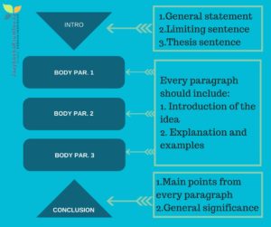 The picture on the right shows an outline which is suitable for an FCE or CAE essay. Every good essay has the following parts, which are nicely linked together and the ideas flow from one part to